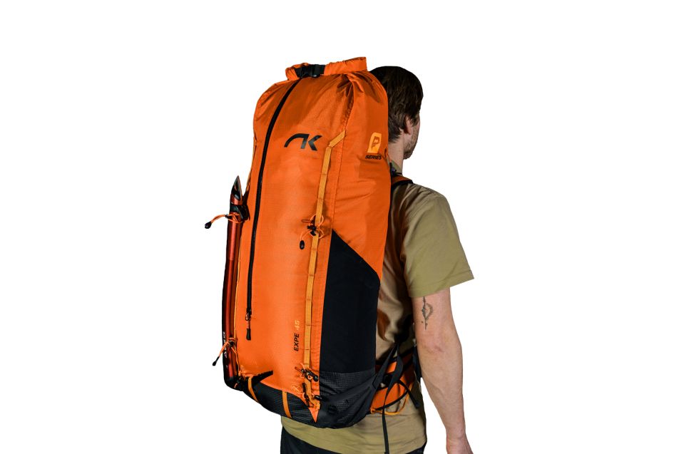 The Expe 45 is the perfect backpack to carry everything you need on your mountain adventures. It is the mid-sized option in our range of lightweight rucksacks and has been designed to carry Niviuk P Series wings Kode P, Skin and Bi Skin, along with all your flight gear. It is very practical because the top can be unrolled at any time to gain an extra 10 litres of space. Ideal for adventurers who seek comfort, ergonomics, and functionality in their expeditions.